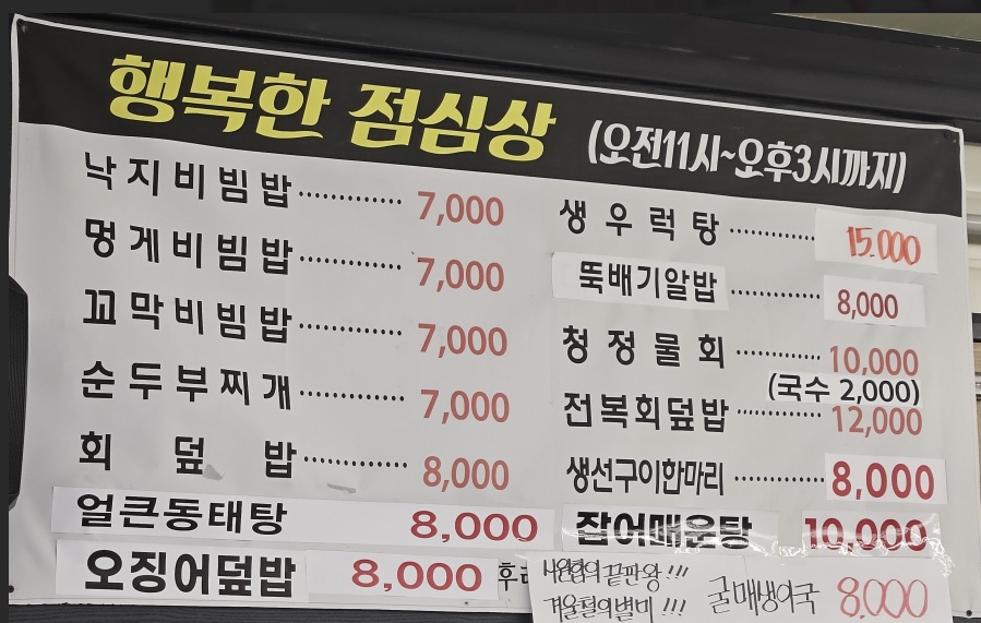 점심한정 (11:00 ~ 15:00), 멍게/꼬막/낙지비빔밥